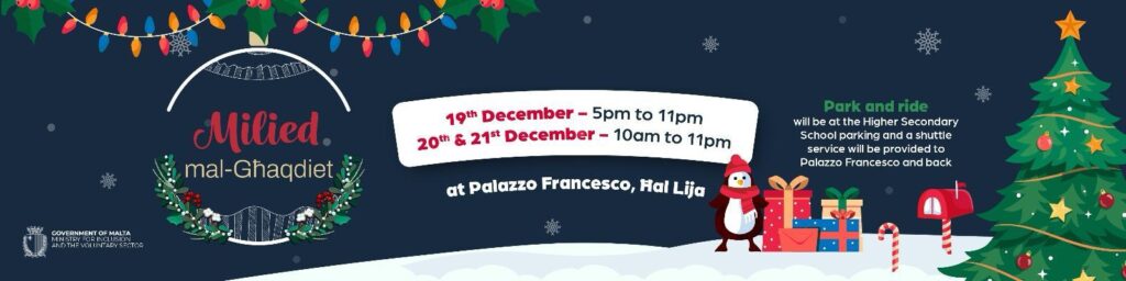A park-and-ride service from the Giovanni Curmi Higher Secondary parking area will be available, and the venue is fully accessible for persons with disabilities, making this a welcoming and festive event for the whole family.